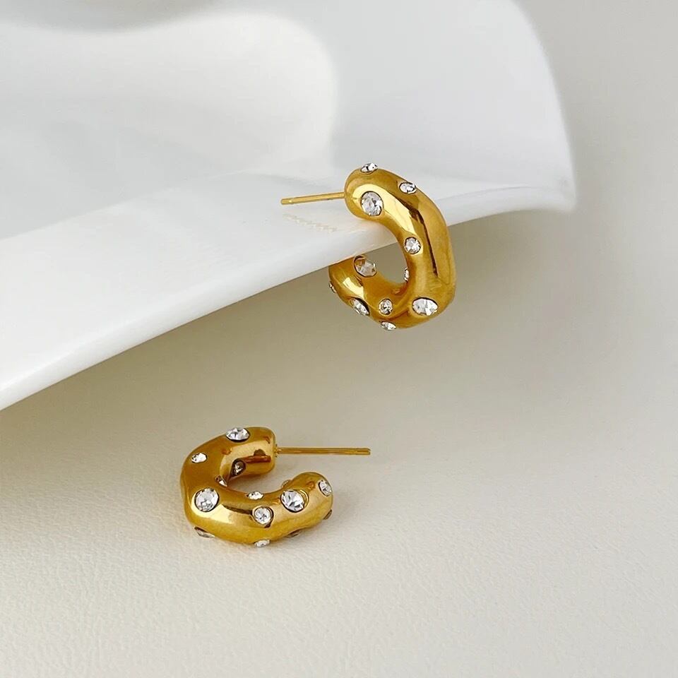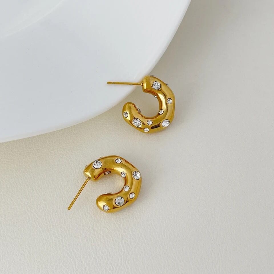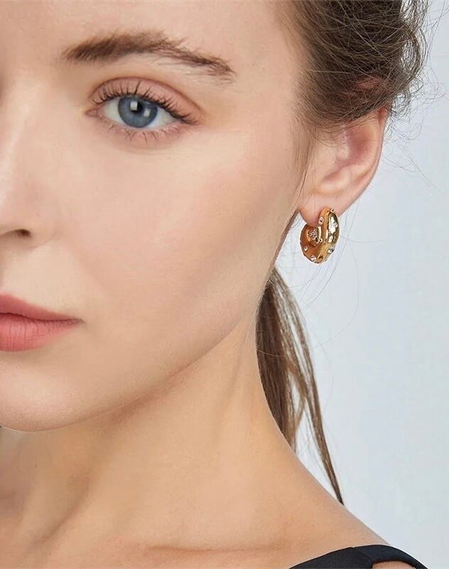フープピアスにジルコニアが散りばめられた